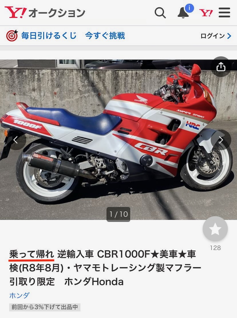 命令されています 2025年9月26日 テーマ: 看板&注意警告!, 街角VOW 作品の解説: 車種的に貴重なんですが、大型二輪免許を取らないとまずダメなんですね。(東京都/ふたばとしあき) 総本部長コメント: お腹を空かせた売れないバンドマンに「金はいいから、食って帰れ!」的な? いい売主と言えよう。投稿人によると貴重な車種とのことだが。