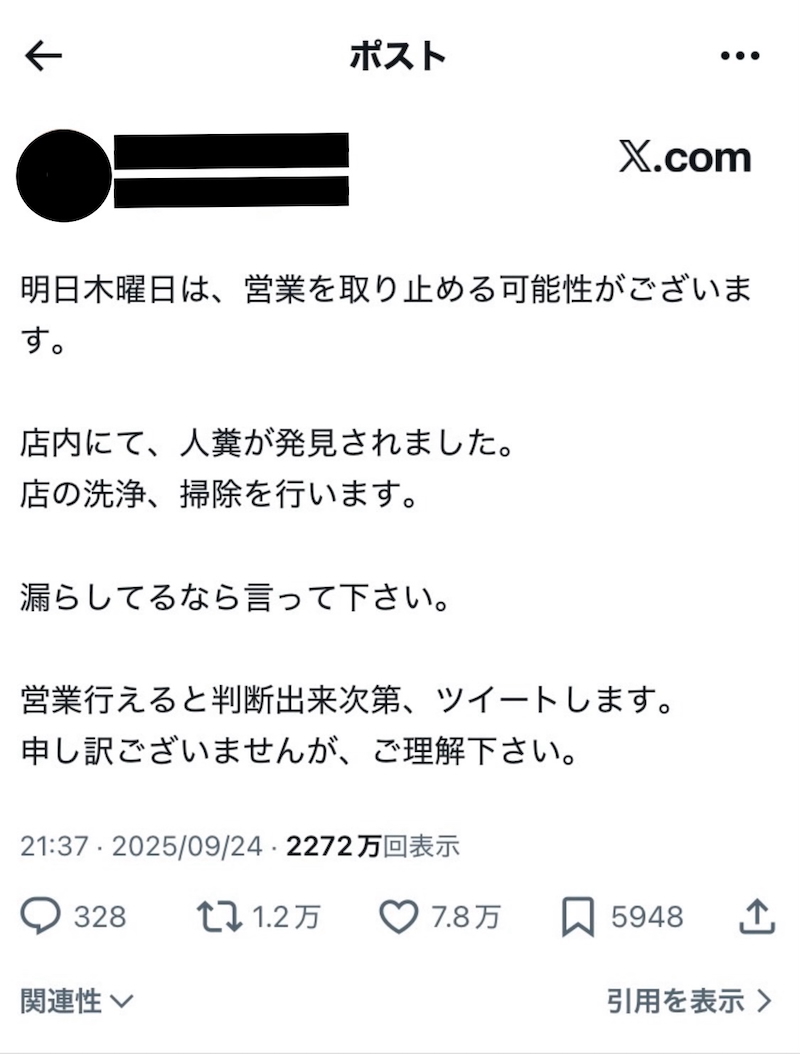 本日の休業理由 2025年9月30日 テーマ: 看板&注意警告!, 街角VOW 作品の解説: 言えば許してくれるのか?(東京都 /耳の日) 総本部長コメント: いったい何がどうなったらそうなるのか。人類の謎。