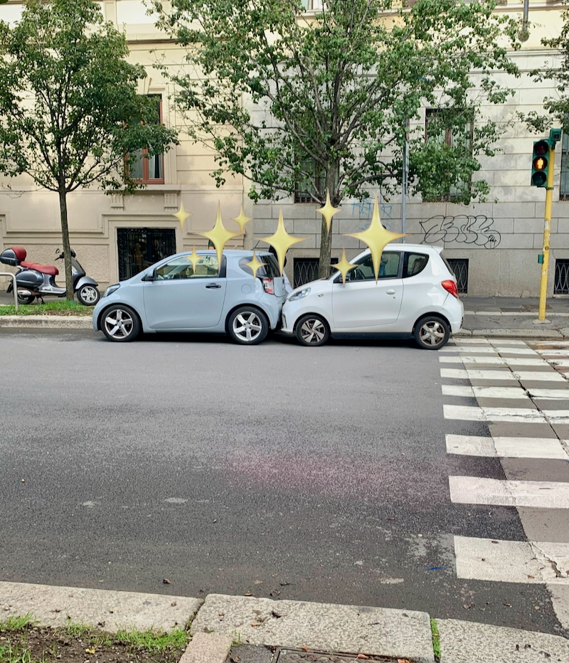 あっ、このスタイルは…… 2025年11月20日 テーマ: その他, 街角VOW 作品の解説: イタリア・ミラノ「最後の晩餐」の教会からダヴィンチ博物館までの道中で路チュー発見。イチャイチャするニコちゃん大王的な二人。対物賠償保険が気になります。(岐阜県/キラキラほしー) 総本部長コメント: ていうか「これ絶対入ってるよね(©みうらさん)2025 from ミラノ」なのでは。