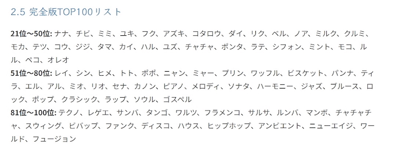 ニャンコの名前よどこへ行く 2025年11月30日 テーマ: その他, 街角VOW 作品の解説: 猫の名前ランキングより。81位~100位なんかいるんですね。やっつけ?(山形県/ゆなちゃん) 総本部長コメント: ニャンコの名前を考え続けたとき、最終的に人は音楽のジャンル名しか思いつかなくなるのか!? ミステリー。