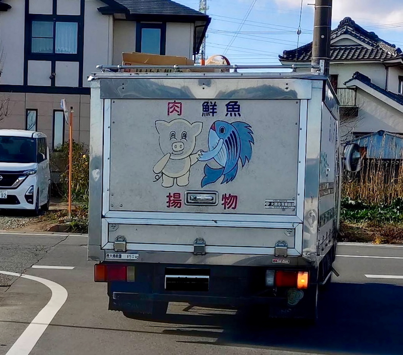 精肉と鮮魚の街角 2026年1月25日 テーマ: 看板&注意警告!, 街角VOW 作品の解説: たまたま見かけたので、パチリと撮影〜。豚と魚が手を繋いでいて何と平和\(^o^)/(群馬県/さるみちゃん) 総本部長コメント: いいなあ。どこか、ヘンリー・ダーガーの描いたブタさんと、ピーテル・ブリューゲル(父)の描いたおサカナさんが握手しているかのようですね。