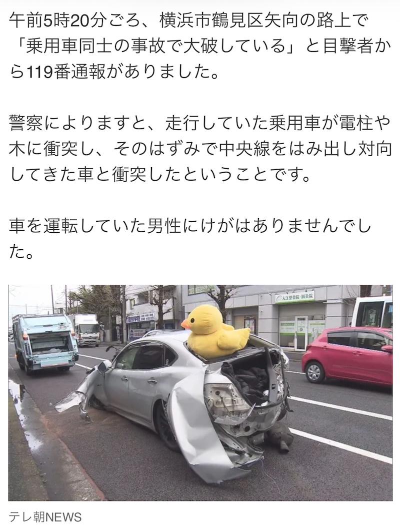 運転手さん、なぜそこに 2026年2月28日 テーマ: 新聞&チラシ広告, 街角VOW 作品の解説:もう少し詳しく詳細がほしいです。(青森県/りんちゃん) 総本部長コメント: たしかに、ご無事そうで何よりだなあ(←アヒルちゃんですよ)。茨城県の青海苔さんからも同じネタ。みなさま、テレビや新聞でヘンなモノを見つけたら、すぐさまVOWを思い出し、速攻送ってきてくださって……。ちょっぴり感動している土曜日の朝。