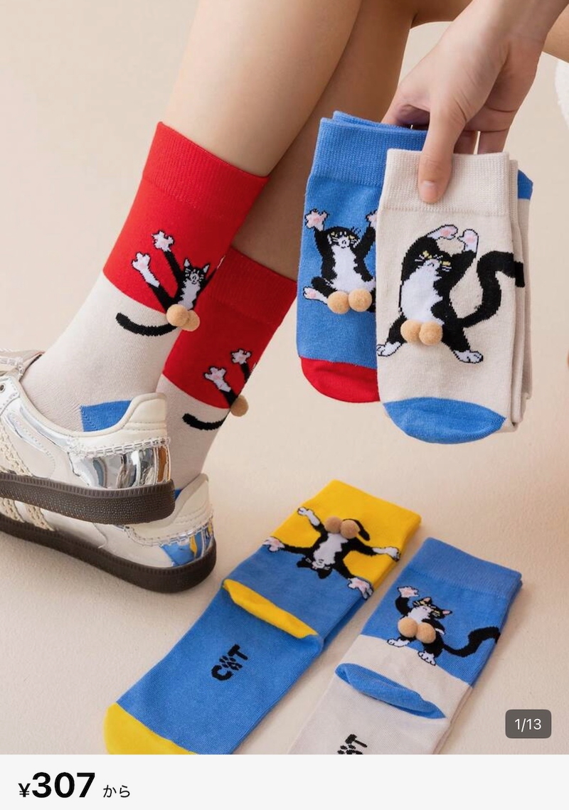 本日のにゃんたまソックス各種 2026年4月13日 テーマ: 虹色商品, 街角VOW 作品の解説: 今まで見た中で、いちばんお下品な気がします。(青森県/りんちゃん) 総本部長コメント: にゃんのタマとはいえ、けしからん! でも、どこかで心を動かされている俺がいる! 近々、手に入れるかも知れません!(©VOW)